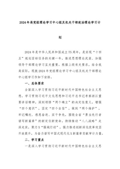 【七哥公文】2024年:2024年局党组理论学习中心组及机关干部政治理论学习计划+更多免费公文+VX:QiGeGongWen2024