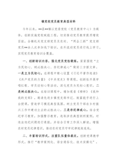 【七哥公文】2024年:镇党校党员教育典型材料+更多免费公文+VX:QiGeGongWen2024
