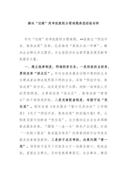 / 【七哥公文】2024年:解决“边缘”类审批提级办理难题典型经验材料+更多免费公文+VX:QiGeGongWen2024