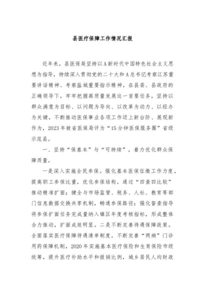 / 【七哥公文】2024年:县医疗保障工作情况汇报+更多免费公文+VX:QiGeGongWen2024