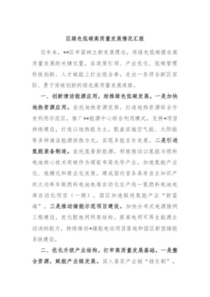 / 【七哥公文】2024年:区绿色低碳高质量发展情况汇报+更多免费公文+VX:QiGeGongWen2024