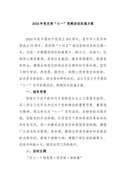 / 【七哥公文】2024年:2024年党支部“七一”党建活动实施方案+更多免费公文+VX:QiGeGongWen2024