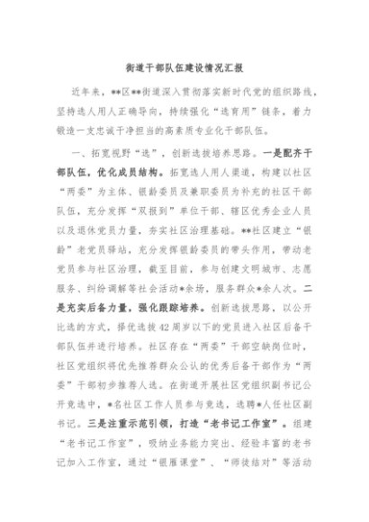 / 【七哥公文】2024年:街道干部队伍建设情况汇报+更多免费公文+VX:QiGeGongWen2024