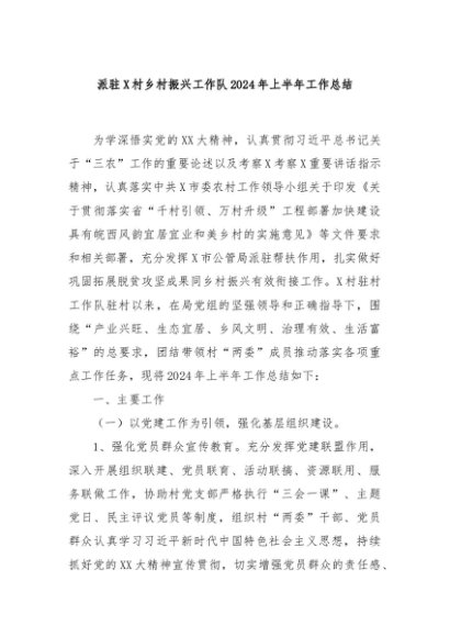 / 【七哥公文】2024年:派驻X村乡村振兴工作队2024年上半年工作总结+更多免费公文+VX:QiGeGongWen2024