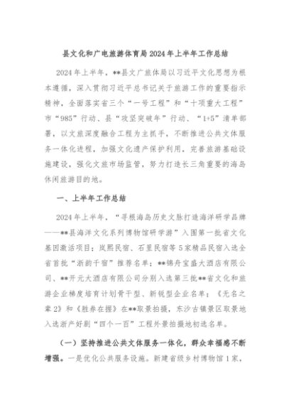 / 【七哥公文】2024年:县文化和广电旅游体育局2024年上半年工作总结+更多免费公文+VX:QiGeGongWen2024