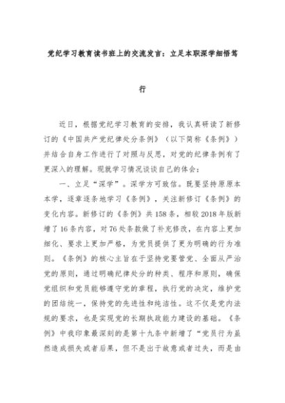【七哥公文】2024年:党纪学习教育读书班上的交流发言:立足本职深学细悟笃行+更多免费公文+VX:QiGeGongWen2024