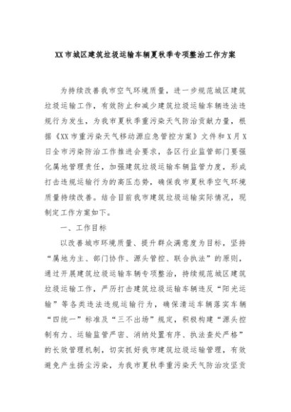 / 【七哥公文】2024年:XX市城区建筑垃圾运输车辆夏秋季专项整治工作方案+更多免费公文+VX:QiGeGongWen2024
