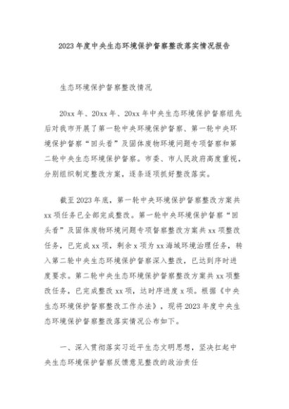/ 【七哥公文】2024年:2023年度中央生态环境保护督察整改落实情况报告+更多免费公文+VX:QiGeGongWen2024