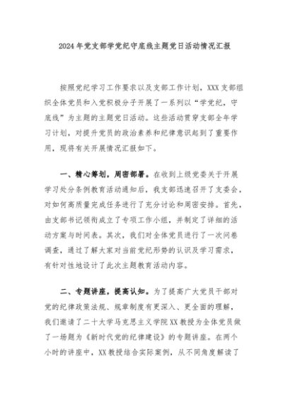 / 【七哥公文】2024年:2024年党支部学党纪守底线主题党日活动情况汇报+更多免费公文+VX:QiGeGongWen2024