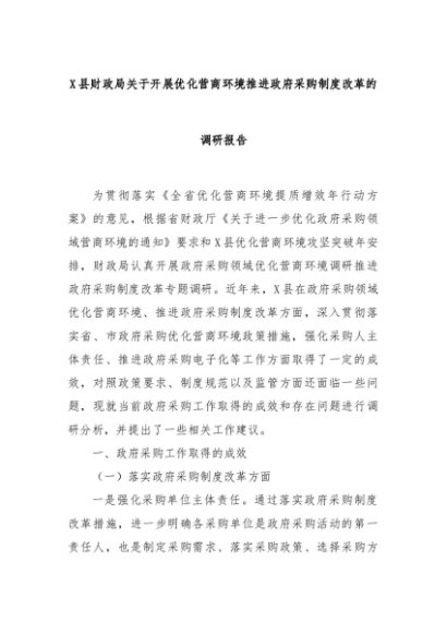 【七哥公文】2024年:X县财政局关于开展优化营商环境推进政府采购制度改革的调研报告+更多免费公文+VX:QiGeGongWen2024