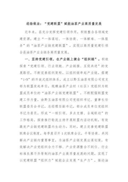 / 【七哥公文】2024年:经验做法:“党建联盟”赋能油茶产业高质量发展+更多免费公文+VX:QiGeGongWen2024