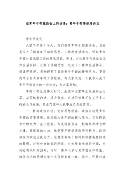 / 【七哥公文】2024年:在青年干部座谈会上的讲话:青年干部要练好内功+更多免费公文+VX:QiGeGongWen2024