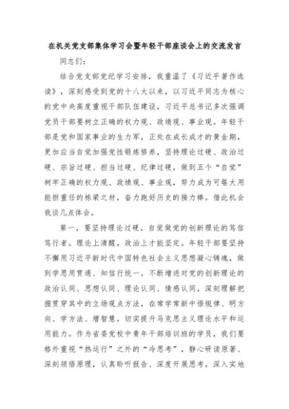 【七哥公文】2024年:在机关党支部集体学习会暨年轻干部座谈会上的交流发言+更多免费公文+VX:QiGeGongWen2024