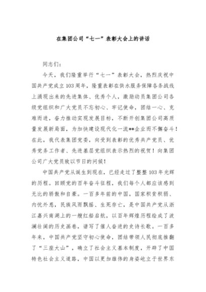 / 【七哥公文】2024年:在集团公司“七一”表彰大会上的讲话+更多免费公文+VX:QiGeGongWen2024