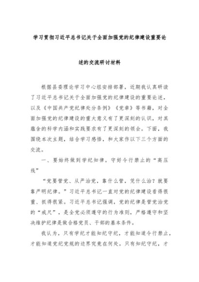 【七哥公文】2024年:学习贯彻习近平总书记关于全面加强党的纪律建设重要论述的交流研讨材料+更多免费公文+VX:QiGeGongWen2024