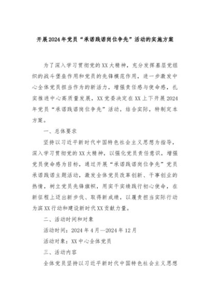 【七哥公文】2024年:开展2024年党员“承诺践诺岗位争先”活动的实施方案+更多免费公文+VX:QiGeGongWen2024
