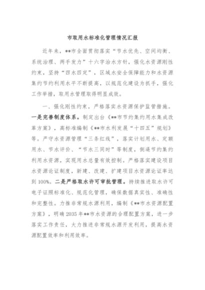 / 【七哥公文】2024年:市取用水标准化管理情况汇报+更多免费公文+VX:QiGeGongWen2024