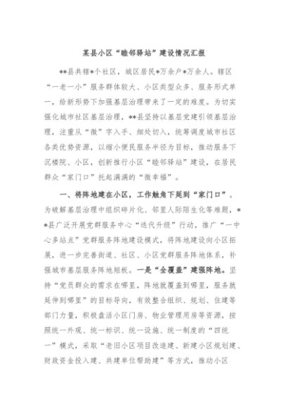 / 【七哥公文】2024年:某县小区“睦邻驿站”建设情况汇报+更多免费公文+VX:QiGeGongWen2024
