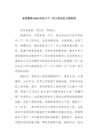 / 【七哥公文】2024年:在某高校2024年关心下一代工作会议上的讲话+更多免费公文+VX:QiGeGongWen2024