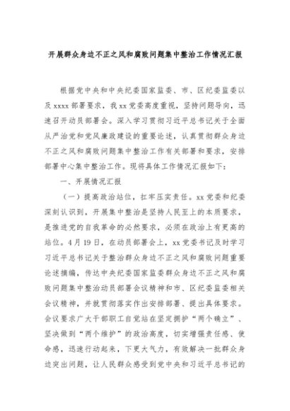 【七哥公文】2024年:开展群众身边不正之风和腐败问题集中整治工作情况汇报+更多免费公文+VX:QiGeGongWen2024