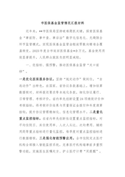 / 【七哥公文】2024年:市医保基金监管情况汇报材料+更多免费公文+VX:QiGeGongWen2024
