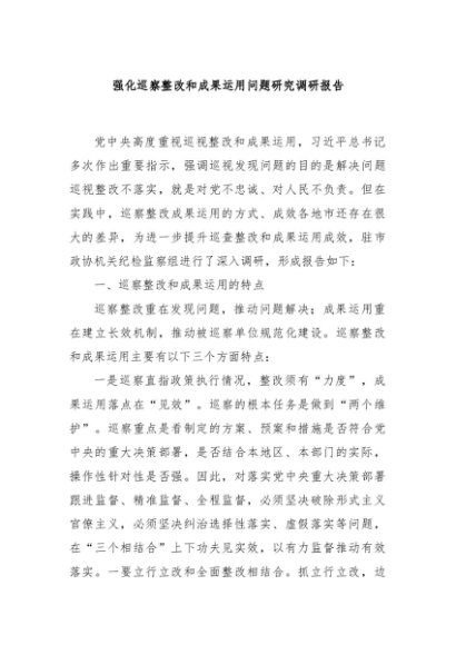 / 【七哥公文】2024年:强化巡察整改和成果运用问题研究调研报告+更多免费公文+VX:QiGeGongWen2024