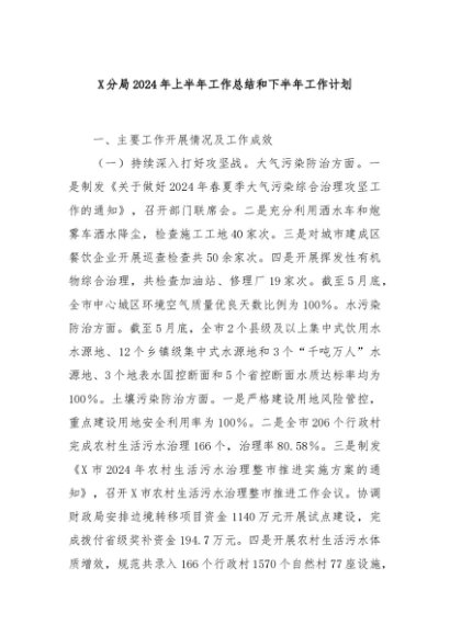 / 【七哥公文】2024年:X分局2024年上半年工作总结和下半年工作计划+更多免费公文+VX:QiGeGongWen2024