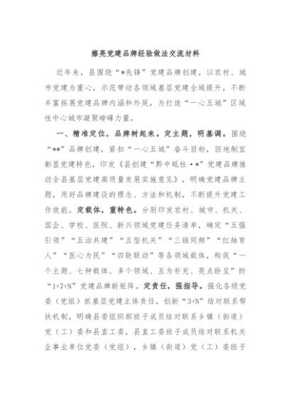 / 【七哥公文】2024年:擦亮党建品牌经验做法交流材料+更多免费公文+VX:QiGeGongWen2024