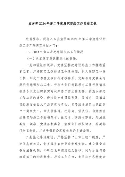 / 【七哥公文】2024年:宣传部2024年第二季度意识形态工作总结汇报+更多免费公文+VX:QiGeGongWen2024