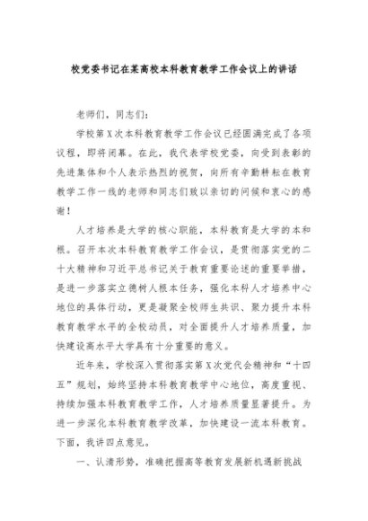 【七哥公文】2024年:校党委书记在某高校本科教育教学工作会议上的讲话+更多免费公文+VX:QiGeGongWen2024