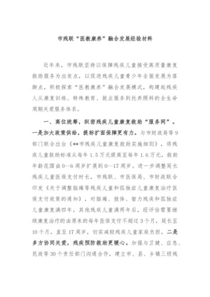 / 【七哥公文】2024年:市残联“医教康养”融合发展经验材料+更多免费公文+VX:QiGeGongWen2024