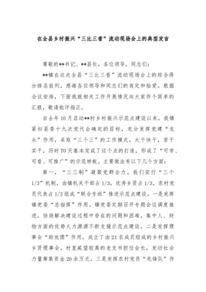 / 【七哥公文】2024年:在全县乡村振兴“三比三看”流动现场会上的典型发言+更多免费公文+VX:QiGeGongWen2024