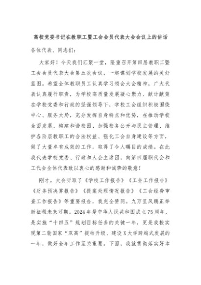 【七哥公文】2024年:高校党委书记在教职工暨工会会员代表大会会议上的讲话+更多免费公文+VX:QiGeGongWen2024