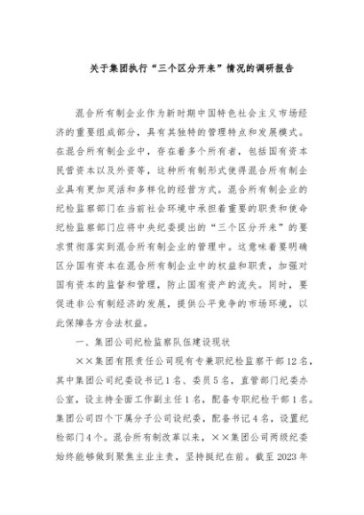 / 【七哥公文】2024年:关于集团执行“三个区分开来”情况的调研报告+更多免费公文+VX:QiGeGongWen2024