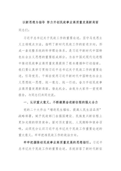 / 【七哥公文】2024年:以新思想为指导 努力开创民政事业高质量发展新局面+更多免费公文+VX:QiGeGongWen2024