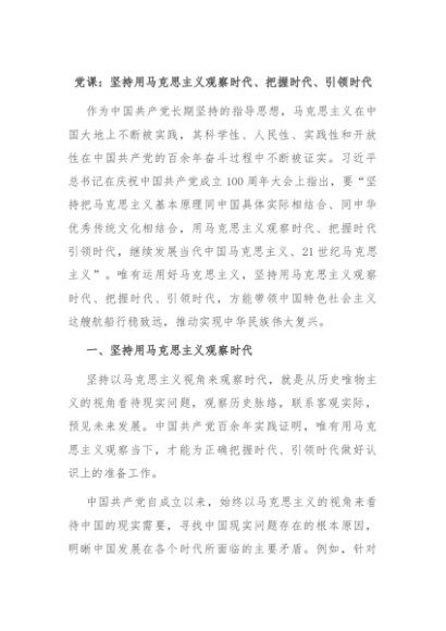 【七哥公文】2024年:党课:坚持用马克思主义观察时代、把握时代、引领时代+更多免费公文+VX:QiGeGongWen2024