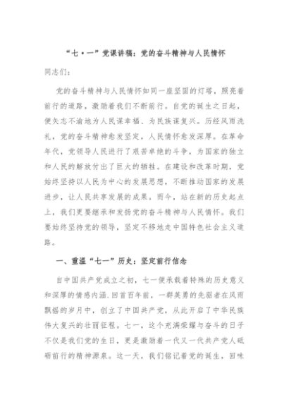 / 【七哥公文】2024年:“七·一”党课讲稿:党的奋斗精神与人民情怀+更多免费公文+VX:QiGeGongWen2024