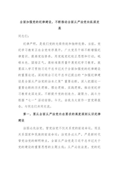 【七哥公文】2024年:全面加强党的纪律建设,不断推动全面从严治党向纵深发展+更多免费公文+VX:QiGeGongWen2024