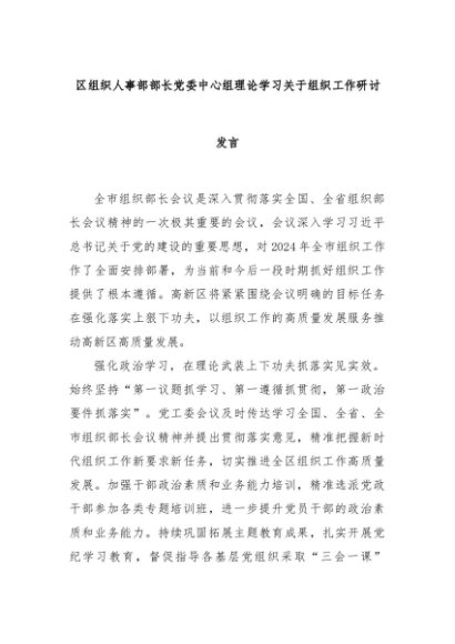 【七哥公文】2024年:区组织人事部部长党委中心组理论学习关于组织工作研讨发言+更多免费公文+VX:QiGeGongWen2024