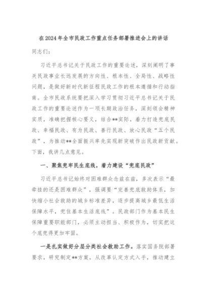 【七哥公文】2024年:在2024年全市民政工作重点任务部署推进会上的讲话+更多免费公文+VX:QiGeGongWen2024