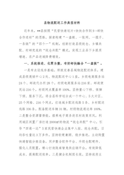 / 【七哥公文】2024年:县物流配送工作典型材料+更多免费公文+VX:QiGeGongWen2024
