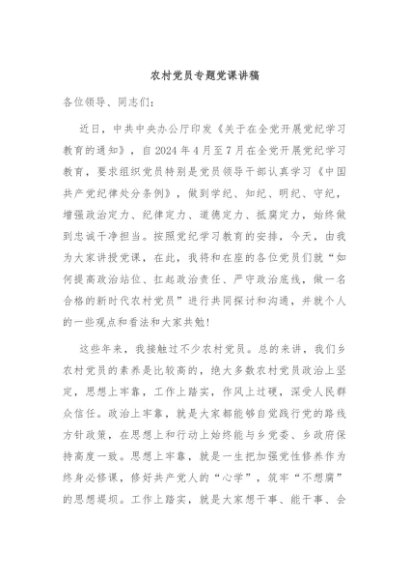 / 【七哥公文】2024年:农村党员专题党课讲稿+更多免费公文+VX:QiGeGongWen2024