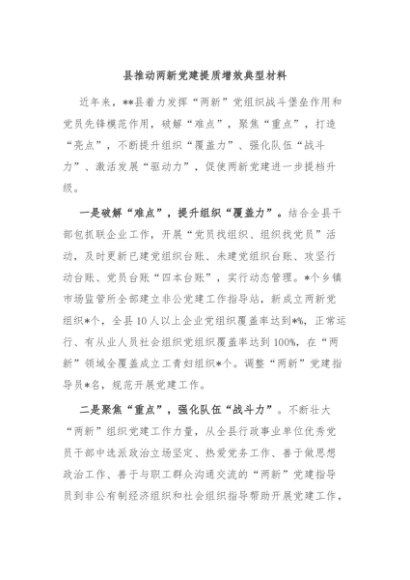 / 【七哥公文】2024年:县推动两新党建提质增效典型材料+更多免费公文+VX:QiGeGongWen2024