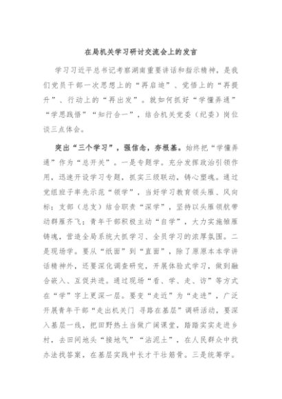 / 【七哥公文】2024年:在局机关学习研讨交流会上的发言+更多免费公文+VX:QiGeGongWen2024