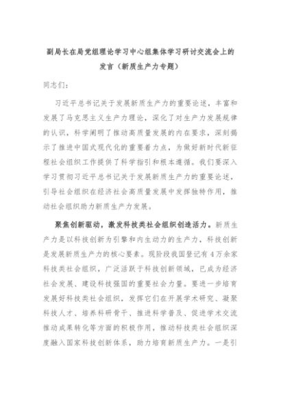 【七哥公文】2024年:副局长在局党组理论学习中心组集体学习研讨交流会上的发言(新质生产力专题)+更多免费公文+VX:QiGeGongWen2024