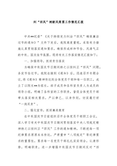 / 【七哥公文】2024年:纠“四风”树新风简要工作情况汇报+更多免费公文+VX:QiGeGongWen2024