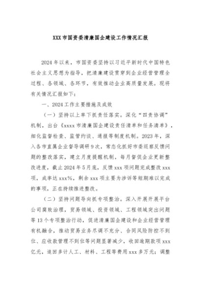 / 【七哥公文】2024年:XXX市国资委清廉国企建设工作情况汇报+更多免费公文+VX:QiGeGongWen2024