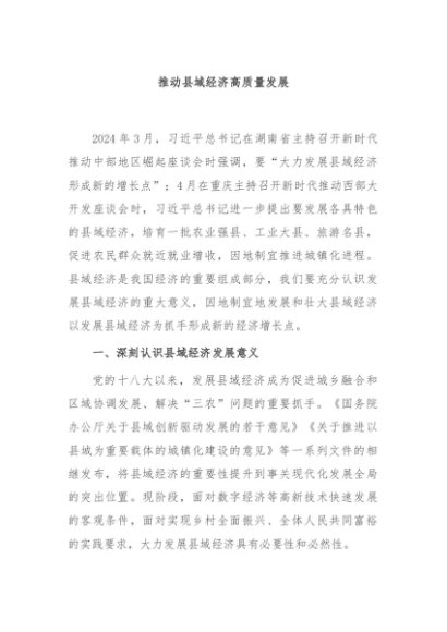 【七哥公文】2024年:推动县域经济高质量发展+更多免费公文+VX:QiGeGongWen2024