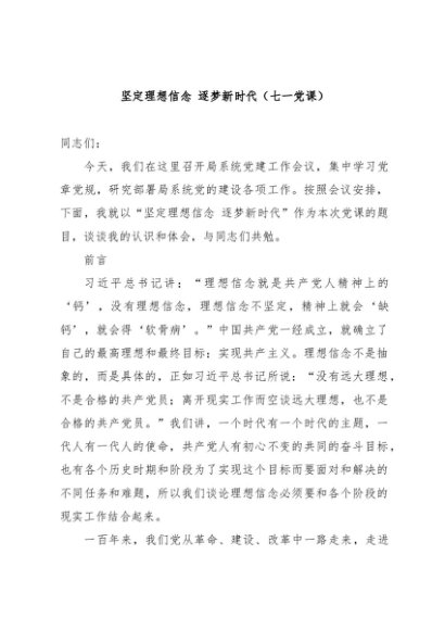 【七哥公文】2024年:建党103周年专题党课讲稿:坚定理想信念+逐梦新时代(党课)+更多免费公文+VX:QiGeGongWen2024