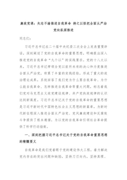 【七哥公文】2024年:廉政党课:矢志不渝推进自我革命 持之以恒把全面从严治党向纵深推进+更多免费公文+VX:QiGeGongWen2024